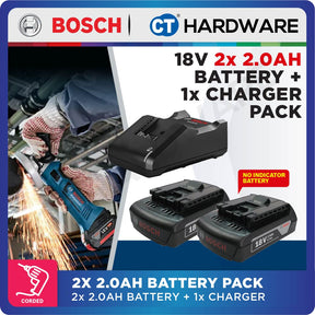 Bosch 18V Lithium-Ion Battery & Charger Starter Packs designed for Bosch 18V SOLO tools. Choose from 2.0Ah or 4.0Ah battery options to power your Bosch Professional tools efficiently.