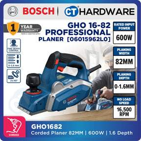 Bosch GHO 16-82 Professional Planer | 82mm | 600W | 1.6mm Depth | Wood Planing Machine [ GHO1682 ] 06015962L0