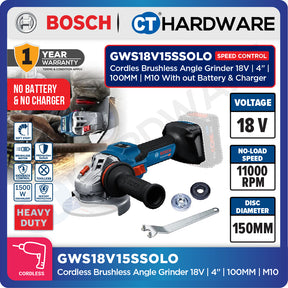 Bosch GWS18V15SSOLO Cordless Brushless Angle Grinder 18V | 4" | 100MM | M10 With out Battery & Charger [ SOLO UNIT ]