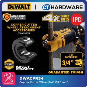 - Dual Functionality - Pop out the cutting wheel from your DEWALT® IMPACT CONNECT™ copper cutter attachment to utilize this product as a hand tool in cramped spaces