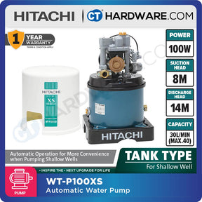Hitachi WT-P100XS AUTOMATIC WATER PUMP TANK TYPE FOR SHALLOW WELLS 3/4" | 100W | 40L/M | 8M/S | 14M/H (ROUND TYPE) [ WTP100XS ]