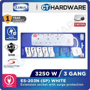 [SIRIM] LEMAX Extension Socket 3 / 4 / 5 Gang Surge Protection 2M White Extension Wire Trailing Socket Soket Plug