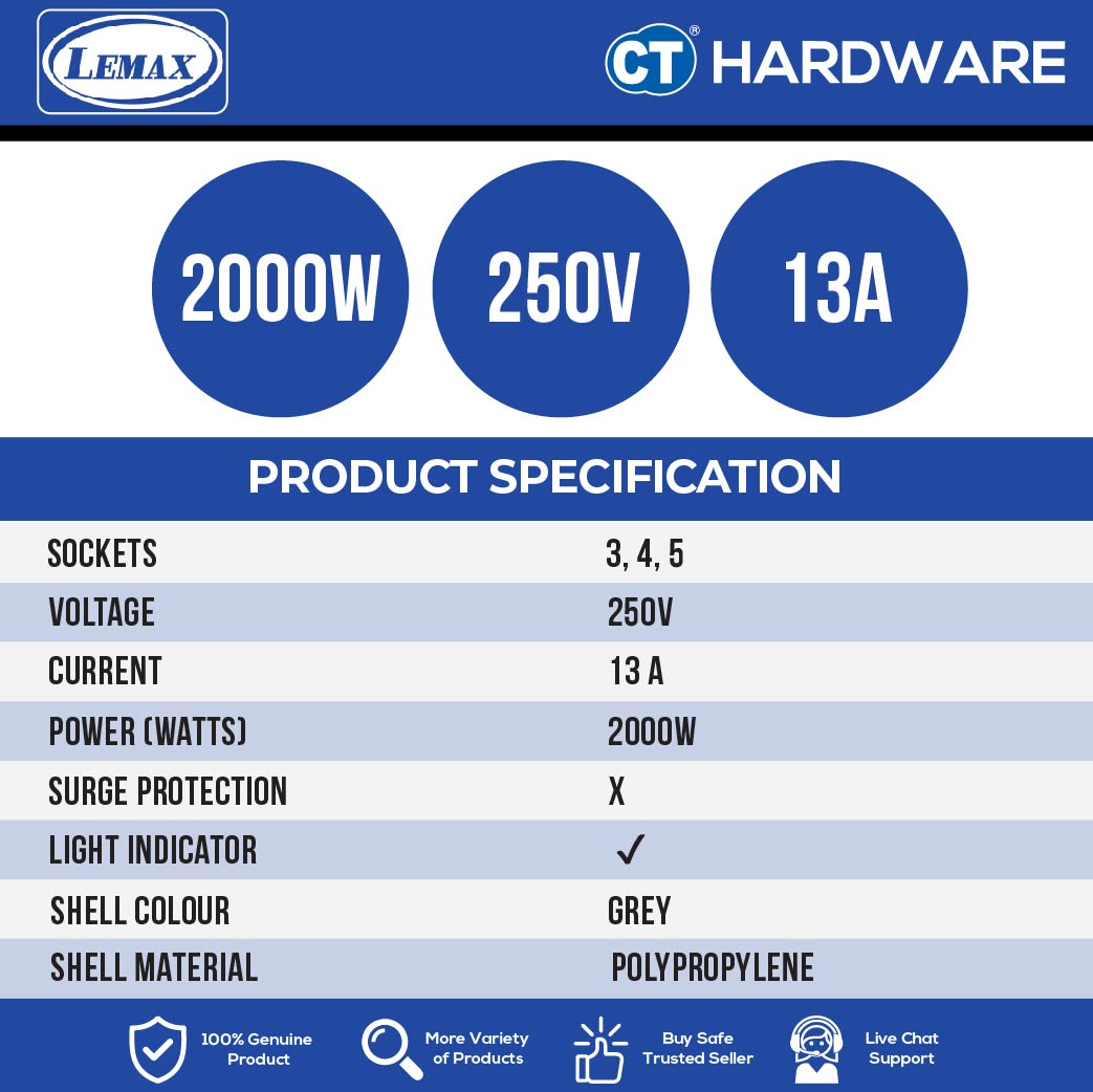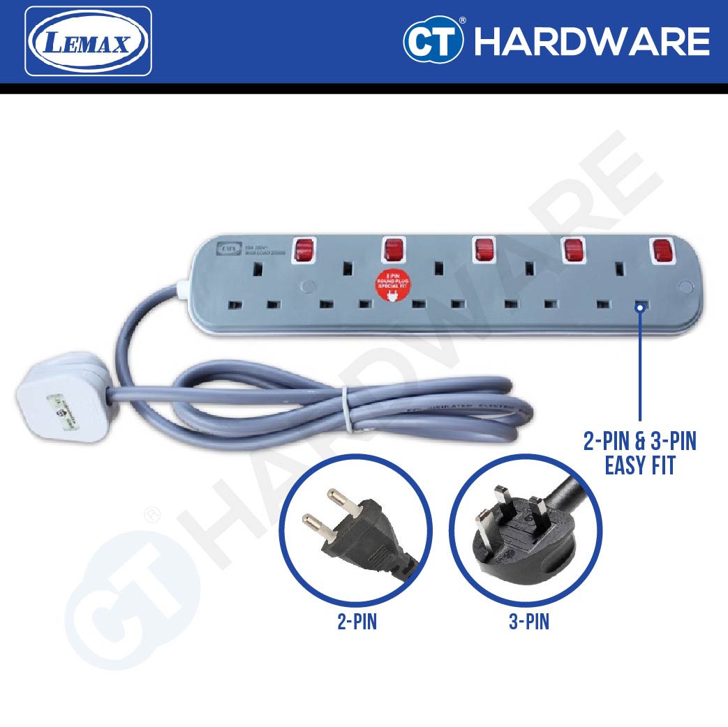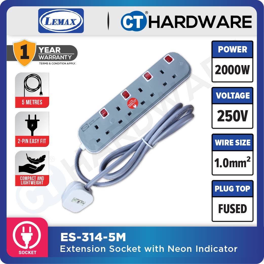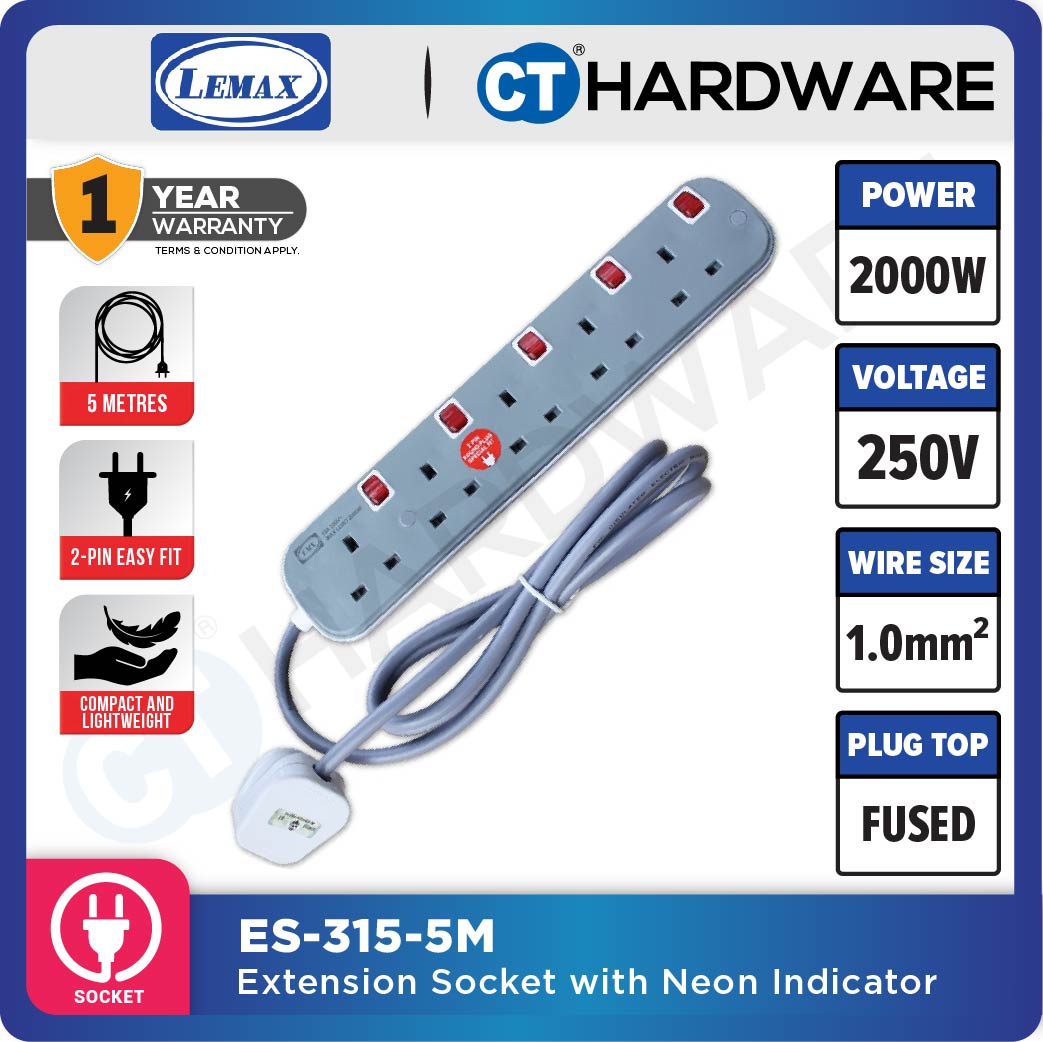 LMX Extension Socket 3 / 4 / 5 Gang 2 Pin Fit Neon Indicator 5M Extension Wire Wire Trailing Socket Soket Plug