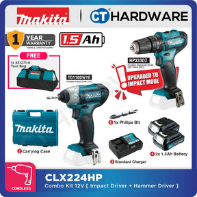 Makita CLX224HP Combo Kit 12V TT110D Impact Driver + HP333D Hammer Drill Incl. 2x 1.5Ah Battery, 1x Charger