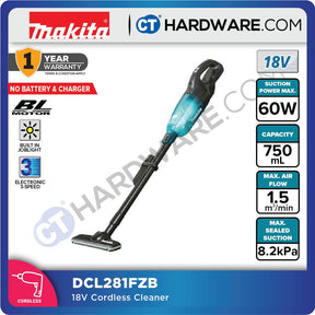 Makita DCL281FZB/ FZW LXT 18V Cordless Brushless Cleaner 750ml 8.2kPa (Body Only)
