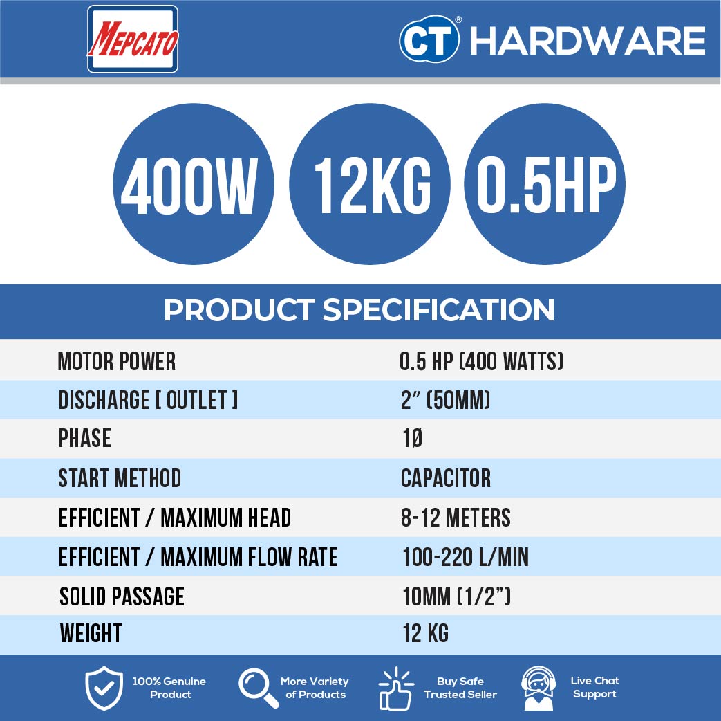 ![MEPCATO CP2.4SA STAINLESS STEEL SUBMERSIBLE PUMP 400W | 220L/MIN | 2" | 12M/H | 1PH | NON AUTO ( SITE DRAINAGE PUMP )WITH ITALY MECH SEAL [ CP24SA ]](http://cthardware.com/cdn/shop/files/cp24sa-22.jpg?v=1743058161&width=1214)