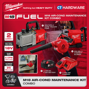 Milwaukee M18 AIR-COND MAINTENANCE KIT Combo | M18 FVP5-0 5CFM Vacuum Pump | M18 BBL-0 Compact Blower Come With 1x M18 B5 5.0Ah Battery and Charger