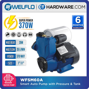 The Welflo WFSM60A is equipped with a pressure tank that ensures consistent water pressure and a dry-running protection circuit that will stop the pump from running dry and possibly burning up your seals and damaging the pump.. Now that's what you call a smart pump!
