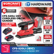 WORCRAFT CFS-S20LI CORDLESS FINISHING SANDER 20V | 13000RPM | PAD SIZE 90x187MM [Set Pack with 2.0AH Battery]