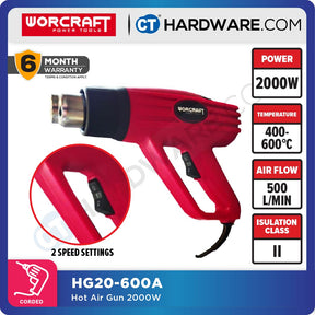 WORCRAFT HG20-600A CORDED HOT AIR GUN 2000W | 350/600C | 300L/MIN | 500L/MIN [ HG20600A ]