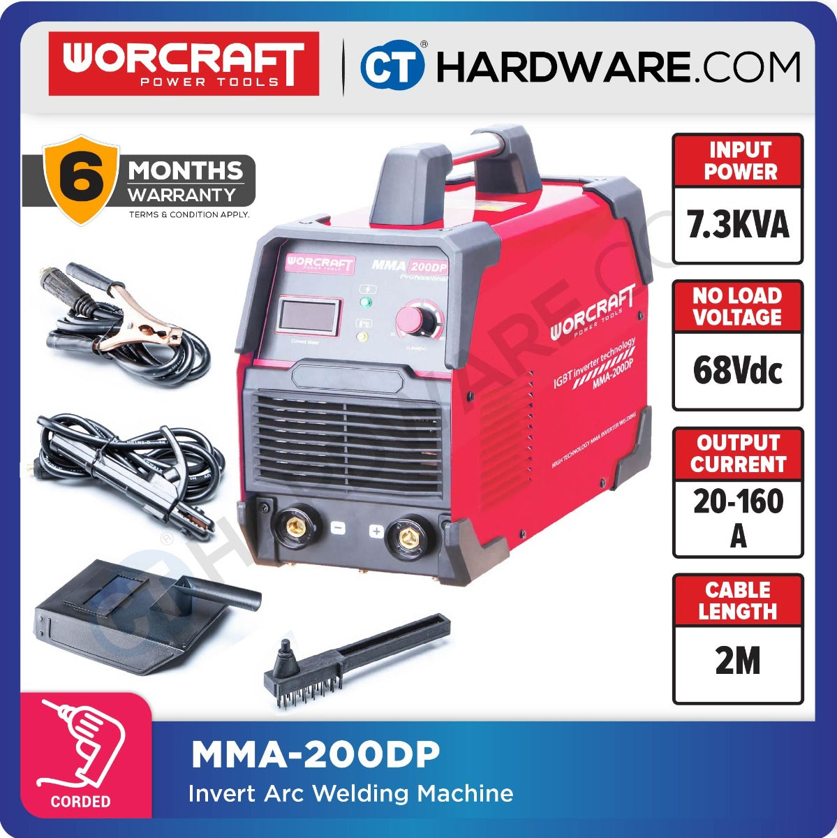 WORCRAFT MMA-200DS Inverter Welding Machine With Set | 7.3KVA | 20-200AMP (PORTABLE TYPE) | Mesin Kimpal Inverter